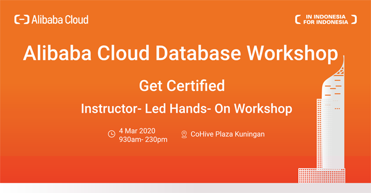 After this session, audience should be able to setup a high performance database system by utilizing a number of Alibaba Cloud's services. Audience will also receive a certification of participation. | | Date: 4 March 2020 Time: 9:30am - 2:30pm Venue: CoHive Plaza Kuningan, Coworking space in South Jakarta, Indonesia Address: Jl. H. R. Rasuna Said Kav C11-14, RT.2/RW.5, Karet Kuningan, Jakarta, South Jakarta City, Jakarta 12940, Indonesia